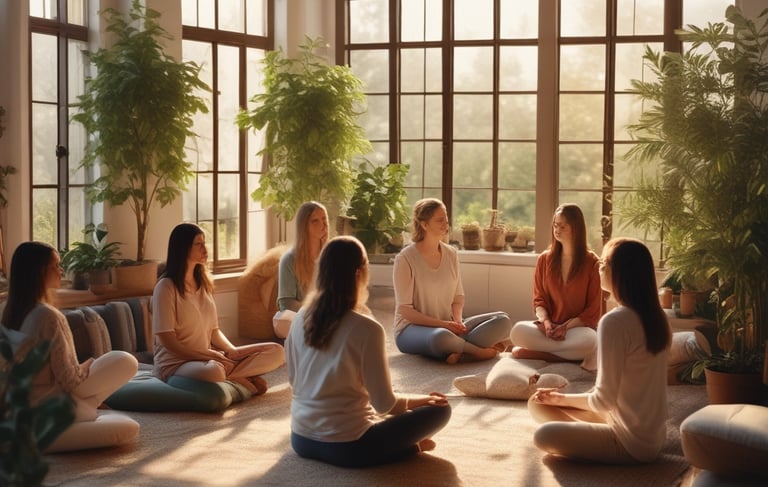 Sessões em grupo utilizando TCC, mindfulness e técnicas de respiração para pessoas que lidam com ansiedade. Formato de 6 encontros com práticas semanais.